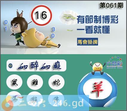 061期正版彩图挂:16爆:羊挂牌成语:如醉如痴挂牌出肖:鼠鸡蛇马猴牛