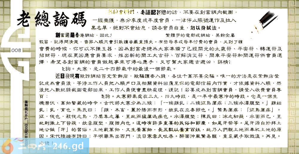 008期:六合皇金句/老总论码/萧公子/林大师/五行夺码/老总信箱截图