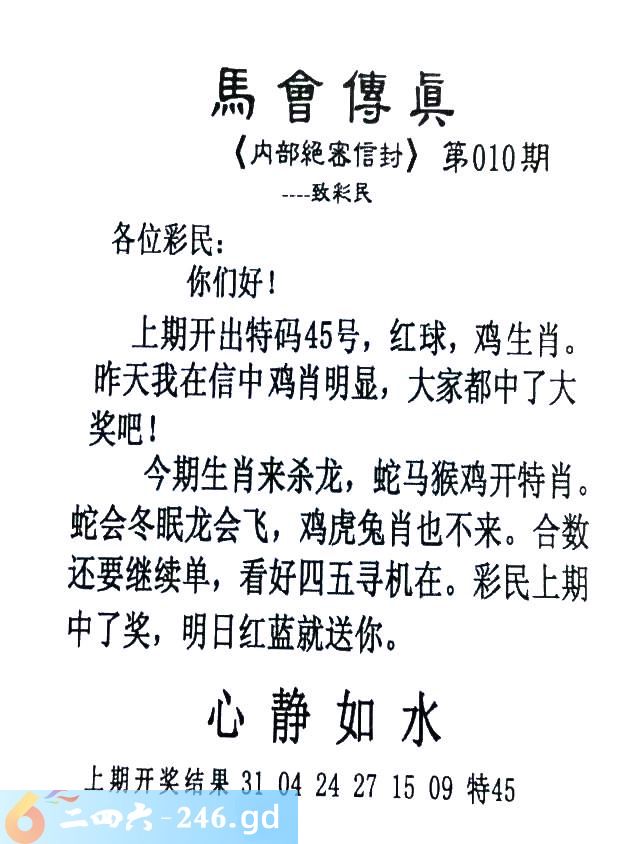 010期:首发推荐:≮馬會傳眞≯→(香港正版)