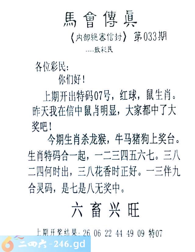 033期:首发推荐:≮馬會傳眞≯→(香港正版)